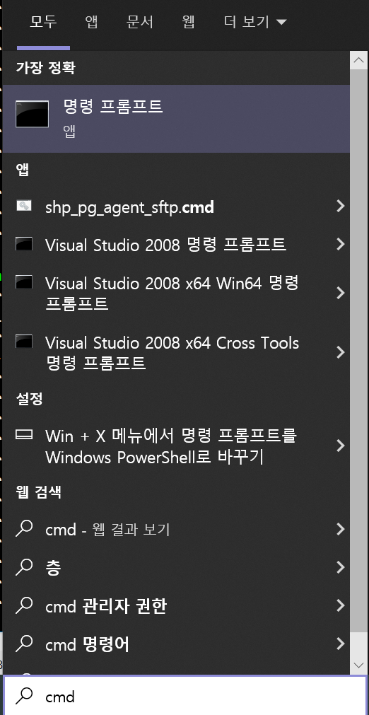 cmd 창을 열어 아래와 같은 커맨드를 입력합니다.