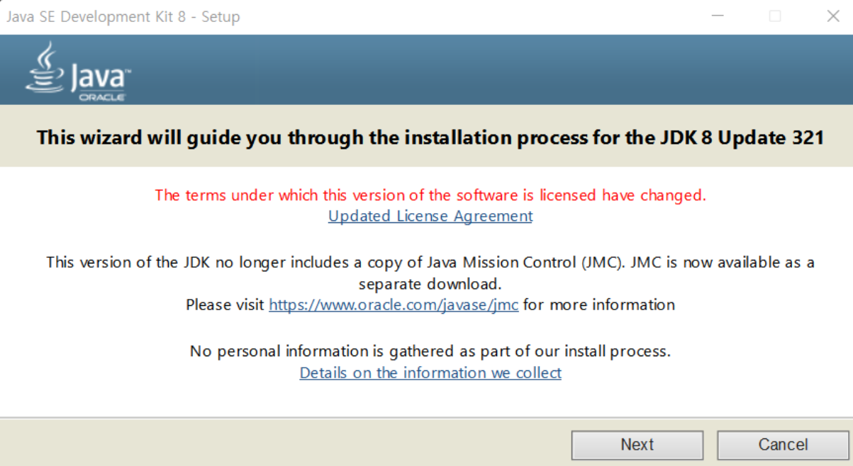 (만일 설치과정에서 JAVA 설치 경로를 변경하셨다면 다음 환경변수 설정 과정에서 설치 경로가 필요하므로,