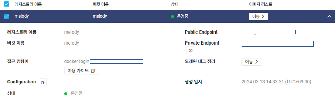 이 후 쿠버네티스에서 pod로 pull 받을 이미지 작성 시 위의 Endpoint가 필요하니 미리 복사해 두면 좋다!