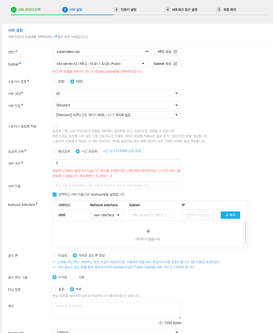 비용 절약을 위해 서버 스펙을 저렇게 설정했지만 원하는 대로 설정하면 된다.