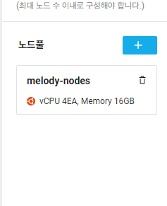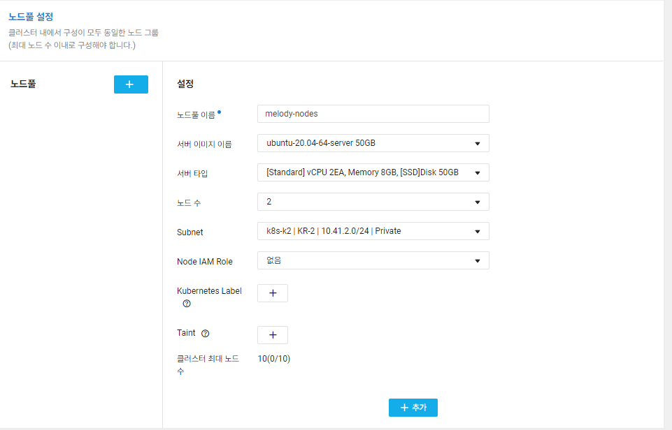 원하는 서버 스펙과 노드 풀 이름을 기입하고 이 페이지 첫 장에 그렸던 서버 구조도와 같이 노드는 2개로 설정하겠다.