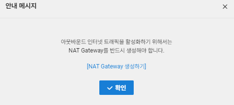위의 클러스터 생성 시 팝업으로 안내가 떴던 것 처럼 Nat Gatway를 추가하도록 하겠다.