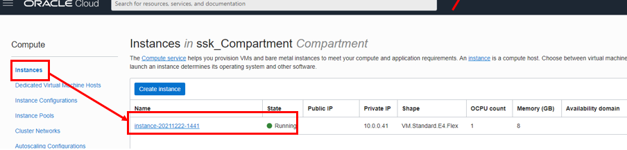컴퓨터 인스턴스 목록으로 이동합니다! 저는 이미 구성해 둔 컴퓨트 인스턴스가 있기 때문에 그 인스턴스를 사용하겠습니다.