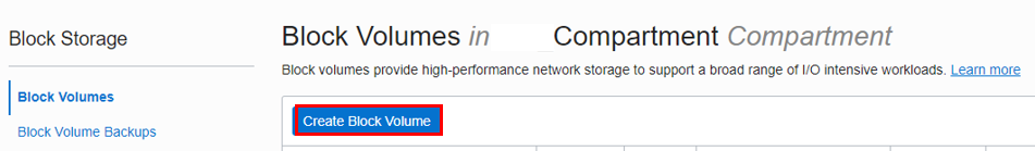 파란색 버튼 create block volume을 클릭합니다.