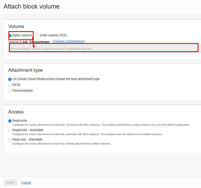 컴퓨터 인스턴스에 Block Volume을 연결합니다.