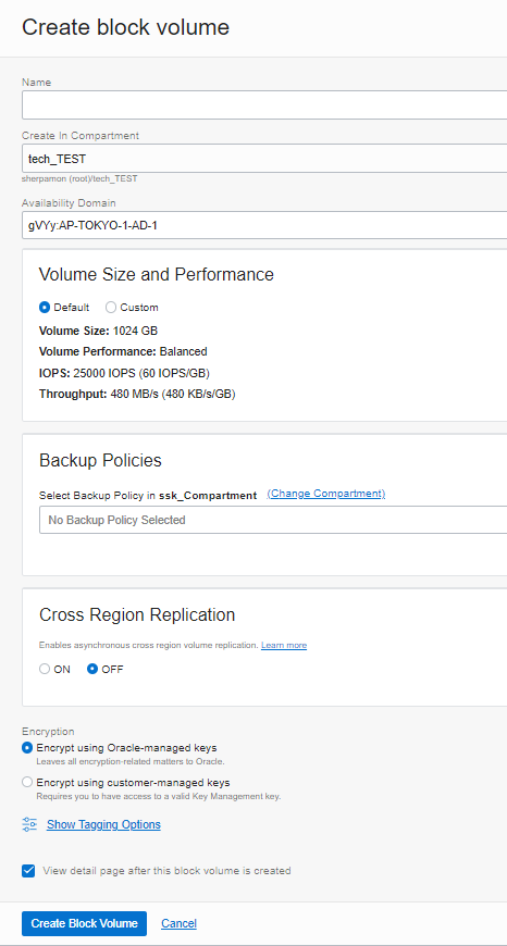 <Block Volume 생성>