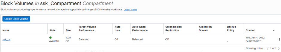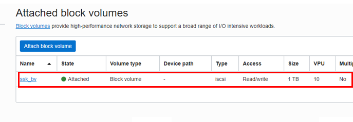 그럼 이렇게 block volume이 생성된 것을 확인할 수 있습니다.