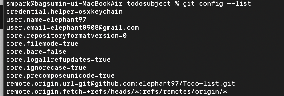 맨 아래 remote.origin.fetch=+ 를 보면 origin이 내 원격 저장소 이름이구나를 알 수 있습니다.