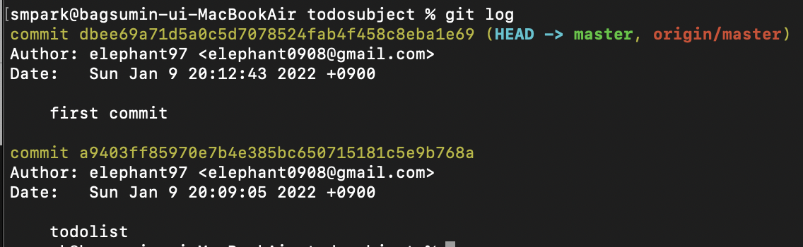 git log 명령어를 통해 내 커밋이 정상적으로 진행 되었는지, 커밋 내역이 잘 작성됐는지 까지 확인 해 주시면 됩니다.
