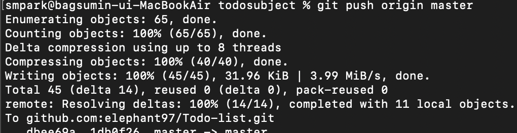 마지막으로 push를 해야 완벽하게 commit 작업이 완료되는데,